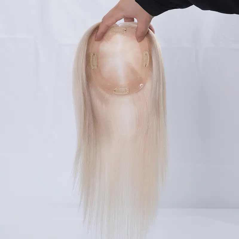 Before putting it on, give the human hair topper a little shake or finger comb it to fluff it up. This will help release any kinks or flat spots caused by shipping.