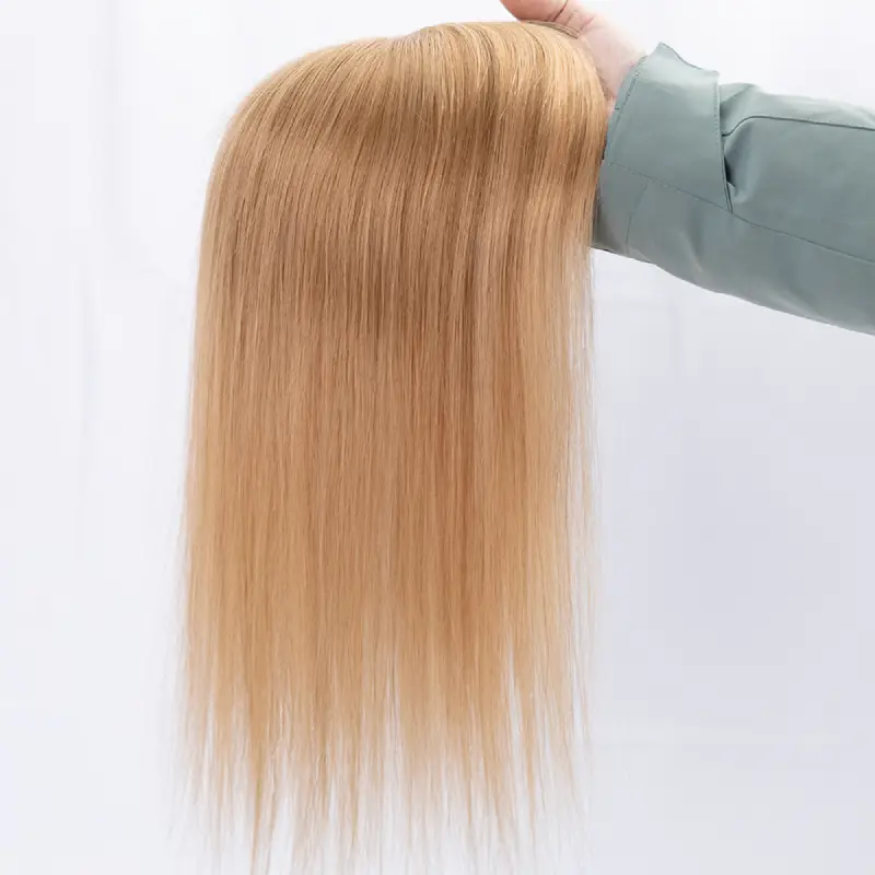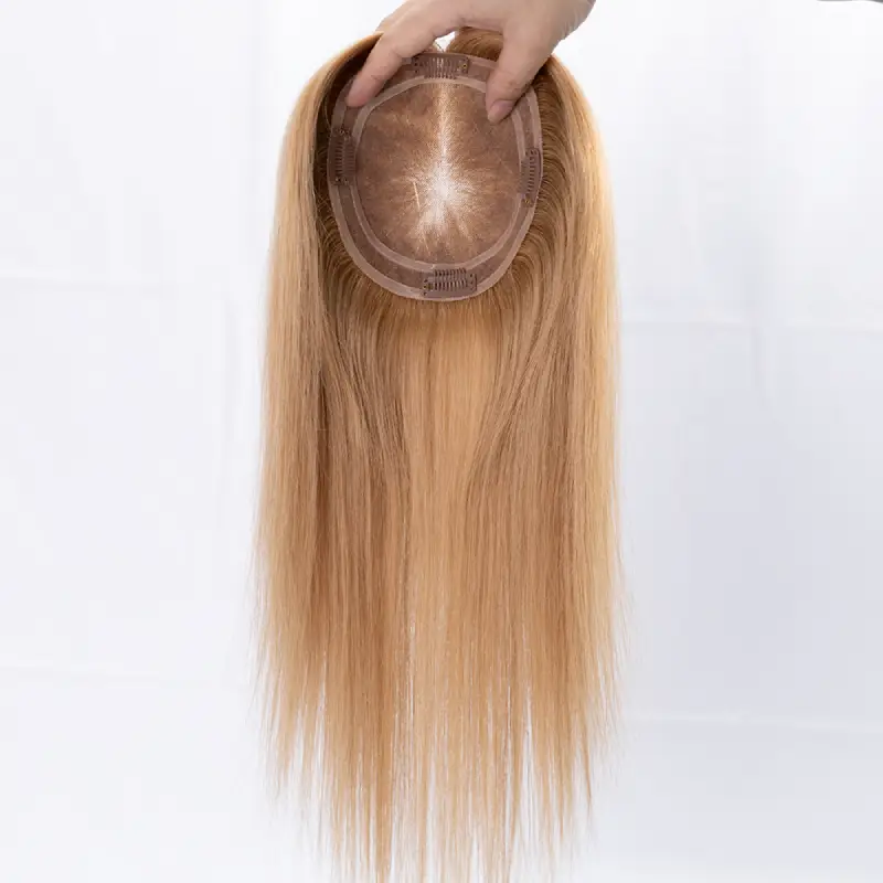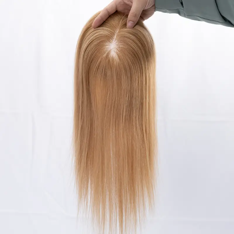 Before putting it on, give the human hair topper a little shake or finger comb it to fluff it up. This will help release any kinks or flat spots caused by shipping.