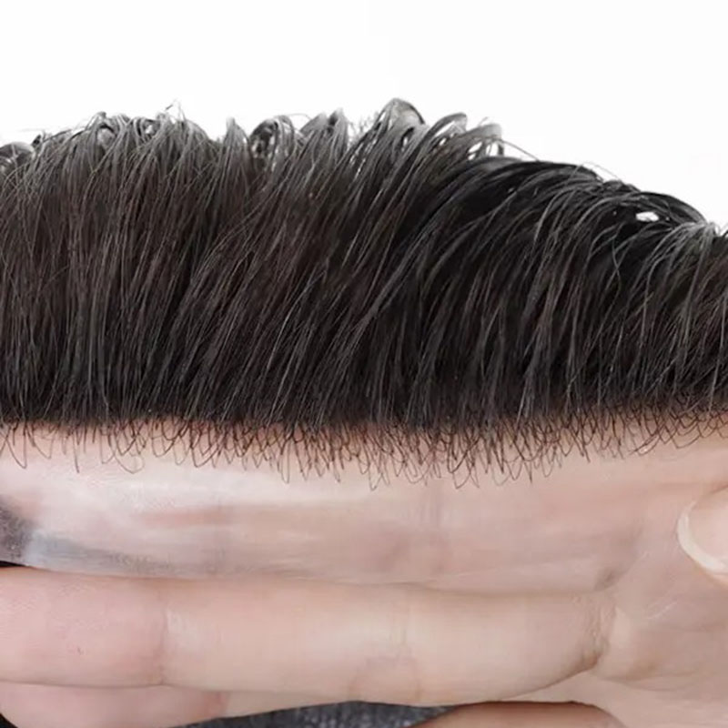 We use the V-loop ventilation method on these men’s hairpieces, so the base is knotless and the hair stands up with a natural lift meaning it looks very realistic and you can style the hair freely. Hair pointing in the same direction means it is less prone to matting or tangling. 0.06 mm-0.08 mm thin skin base is durable and strong, during the time you could wear it swimming, sleeping even showering, just remember not to apply conditioner to the base. Toupee is the easiest solution for men who are experiencing hair loss. With men’s toupee, you can achieve any hot men’s hairstyle with the help of a hairstylist.